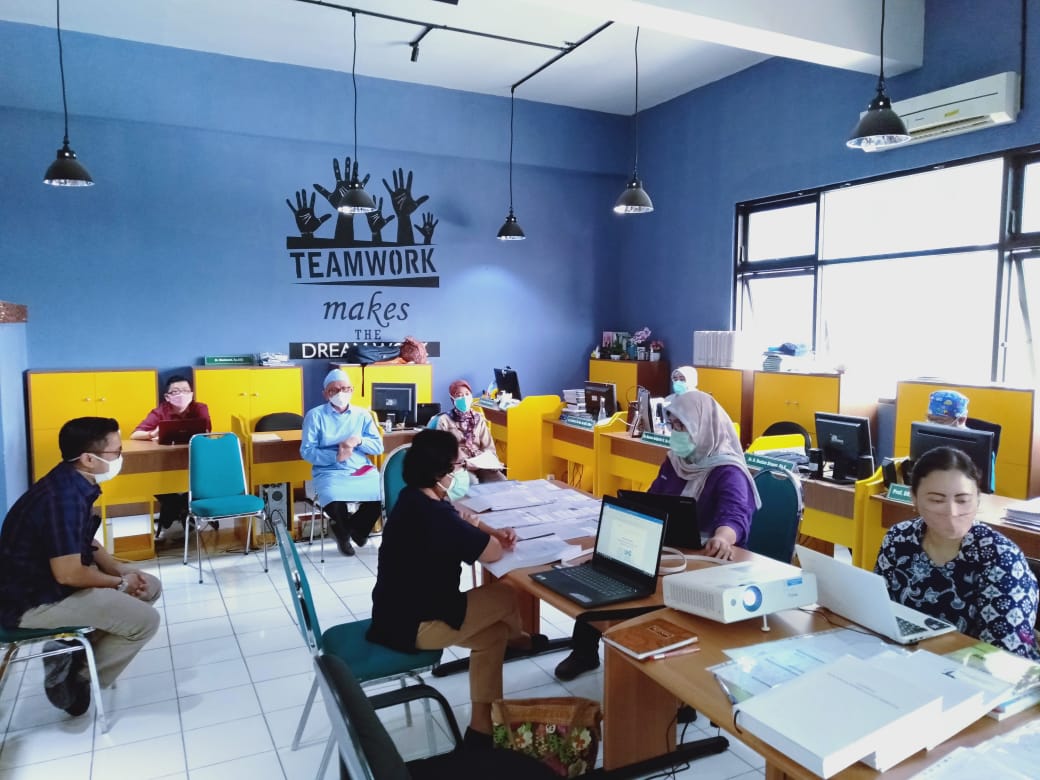 Telah dilaksanakan Audit Mutu Internal (AMI) Prodi Ilmu Kesehatan Anak FK UNS 2021 yang merupakan agenda rutin tahunan oleh Tim Penjaminan Mutu FK UNS yang bertujuan untuk mempersiapkan dan memonitoring serta mengevaluasi kelengkapan data-data dan dokumen pendukung akreditasi setiap Prodi. Tahun ini AMI Prodi Ilmu Kesehatan Anak dilaksanakan pada tanggal 15 September 2021 di Anggrek 4 Prodi Ilmu Kesehatan Anak. Walaupun dilaksanakan pada ssaat pandemi COVID-19 tetapi audit tetep dilaksanakan secara luring yang hanya diikuti oleh KSM, KPS, SPS dan staf yang merupakan penanggung jawab setiap kriteria. Data-data dan dokumen pendukung yang disiapkan merupakan data untuk format akreditasi 9 kriteria antara lain : Kriteria 1: Visi, Misi,Tujuan dan Strategi; Kriteria 2 : Tata Pamong, Tat Kelola dan Kerjasama; Kriteria 3 : Mahasiswa; Kriteria 4 : Sumber Daya Manusia; Kriteria 5 ; Keuangan, Sarana dan Prasarana; Kriteria 6 : Pendidikan; Kriteria 7 : Penelitian; Kriteria 8 : Pengabdian Masyarakat; Kriteria 9 : Luaran dan Capaian Tridarma Audit dilakukan oleh tim Penjaminan Mutu FK UNS yaitu dr. Amiroh Kurniati, Sp. PK, M. Kes dan dr. Sienny Linawati, Sp.PK, M. Sc.