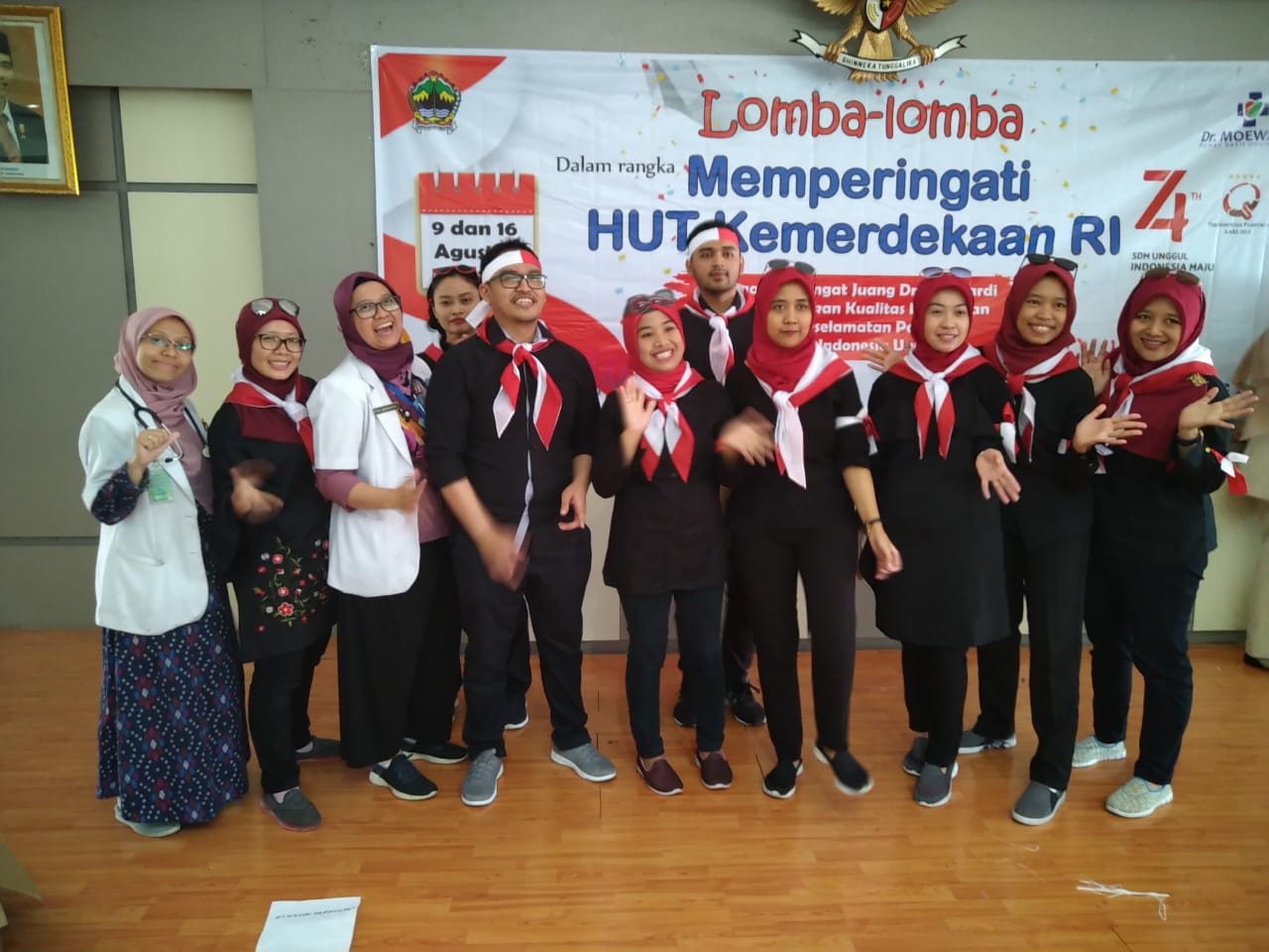 Dirgahayu HUT Kemerdekaan Republik Indonesia ke 74 pada tanggal 17 Agustus 2019. Menyambut kemeriahan HUT ke-74 RI dengan menghias setiap sudut ruangan dengan pernak-pernik menarik berbau kemerdekaan. Salah satu yang dilombakan adalah lomba menghias ruangan yang diikuti semua divisi yang ada di rumah sakit. Selain itu ada lomba-lomba yang diadakan di indoor tanggal 9 Agustus 2019 dan outdoor tanggal 16 Agustus 2019. Lonba indoor antara lain : Lomba desain poster tema " Berantas Korupsi untuk Indonesia Unggul", Lomba Yel-yel kreatif " Peningkatan Kualitas Pelayanan Publik", Lomba mirip Pahlawan Nasional, Lomba Kebersihan Ruang dengan 5R (Ringkas, Rapi, Resik, Rawat, Rapi), Lomba Crazy Wheels/ Roda Gila, Lomba Makan Blimbing wuluh, Lomba joget caesar.