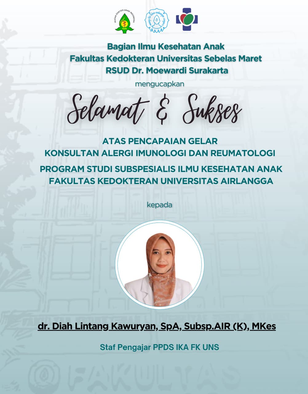 1. dr. Diah Lintang Kawuryan, Sp. A, Subsp. AIR(K), M. Kes selesai Februari 2026