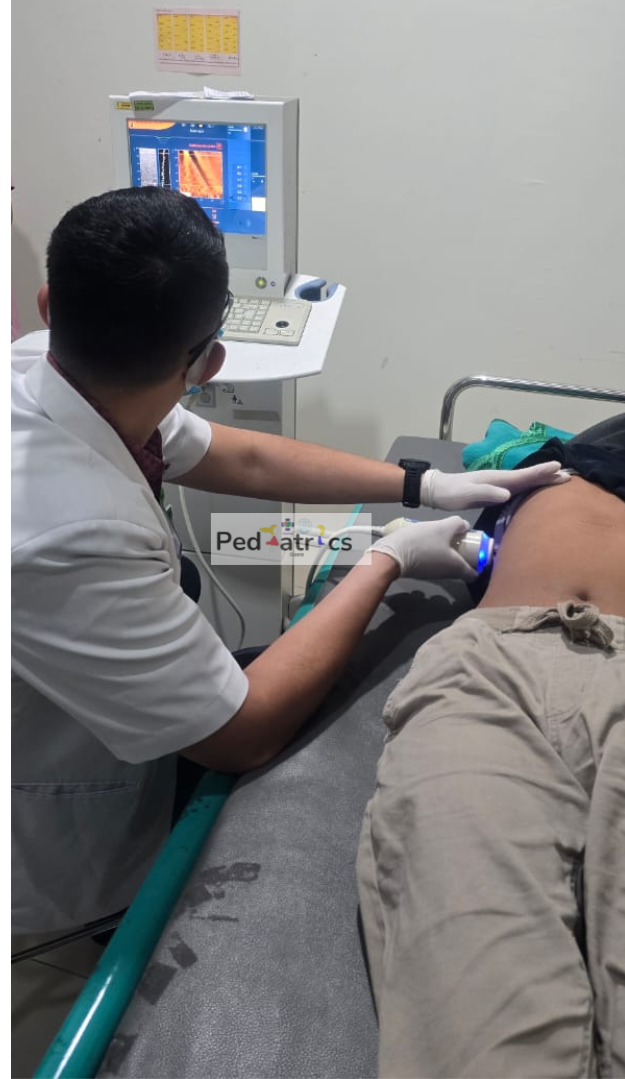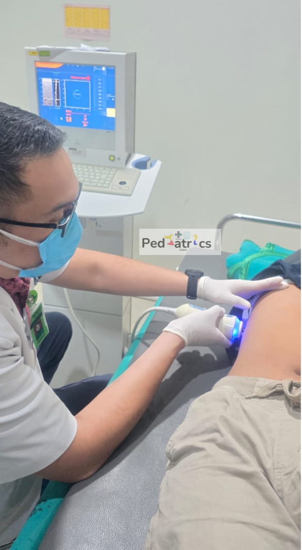 Elastografi USG, juga dikenal sebagai FibroScan, adalah tes pencitraan non invasif yang menggunakan gelombang suara untuk mengukur kekakuan hati. Kekakuan hati yang berlebihan bisa menjadi tanda adanya fibrosis (jaringan parut) atau steatosis (penumpukan lemak) pada hati, yang keduanya bisa menjadi indikasi penyakit hati. Elastografi USG adalah salah satu tindakan yang dilakukan oleh PPDS Ilmu Kesehatan Anak di subdivisi Gastroeterologi Hepatologi.