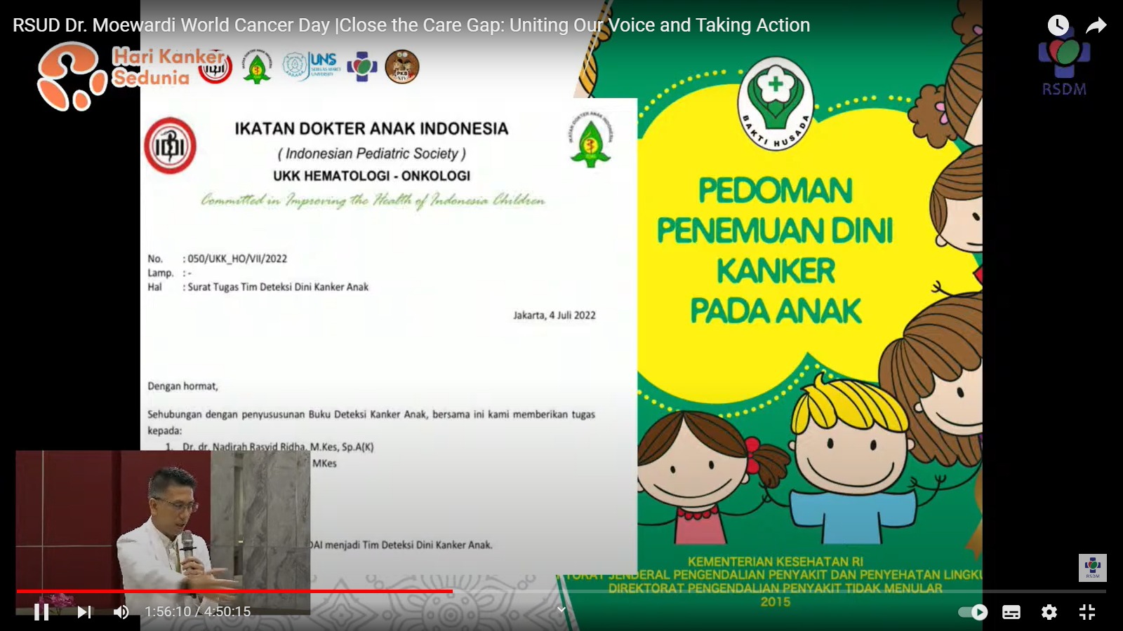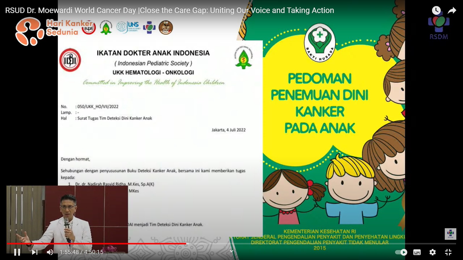 RSUD Dr. Moewardi menyelenggarakan Seminar Awam dalam rangka memperingati Hari Kanker Sedunia atau World Cancer Day pada tanggal 4 Februari 2023. Acara dilaksanakan pada hari senin tanggal 6 Februari 2023 di Ruang Sekar Jagad RSUD Dr. Moewardi. Seminar awam diikuti oleh dokter umum, mahasiswa kedokteran serta masyarakat awam. Sebanyak 6 narasumber dalam seminar membahas mengenai Skrining Kanker Serviks, Skrining Kanker Payudara, Skrining Kanker Paru, Tanda & Gejala Kanker Darah pada Anak. Skrining Kanker Tulang dan Jaringan Lunak Alat Gerak, serta Skrining Kanker Prostat. Seminar Hari Kanker Sedunia ini diharapkan mampu meningkatkan pemahaman dan pengetahuan mengenai pentingnya deteksi dini untuk penyakit kanker.