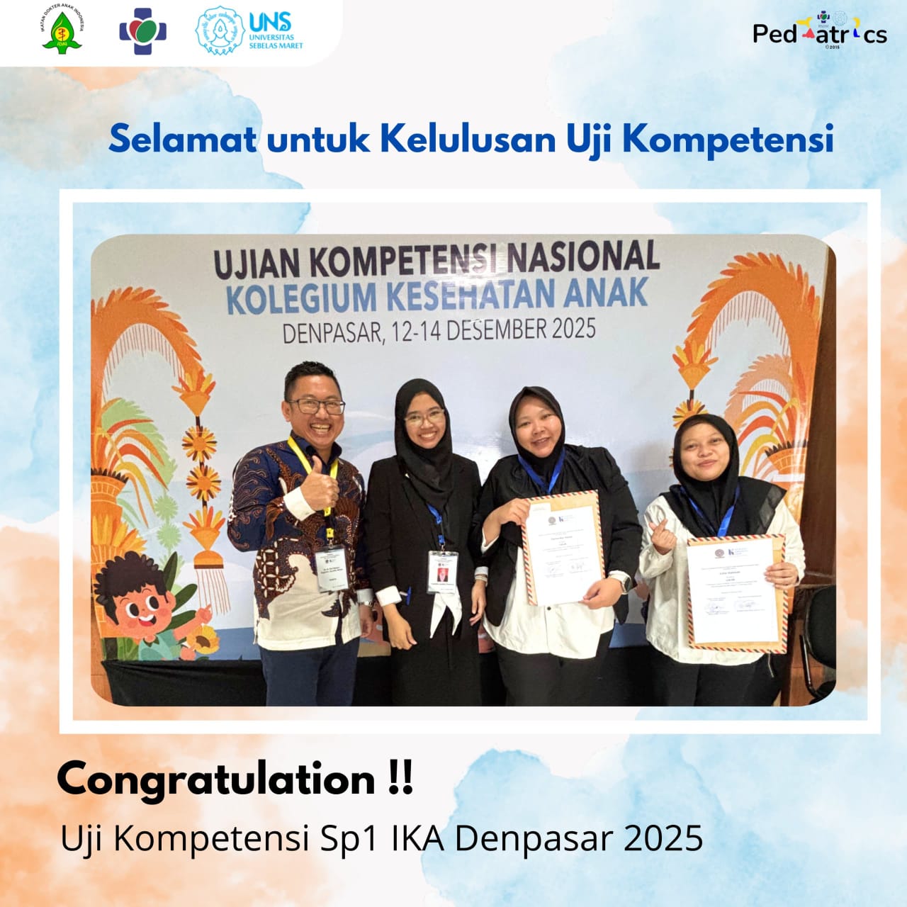 Prodi Ilmu Kesehatan Anak FK UNS mengirimkan 3 kandidat peserta ujian ENT yaitu :