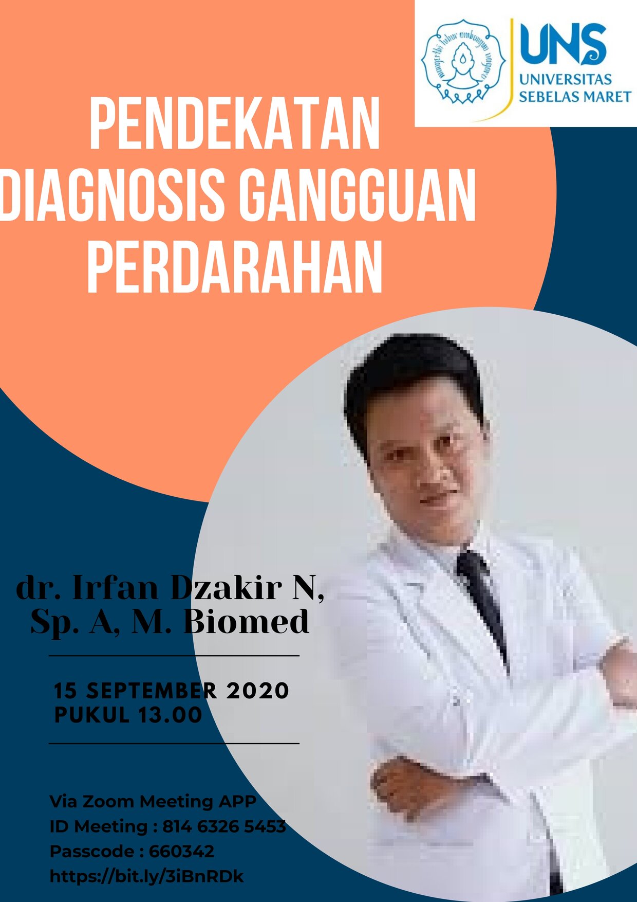 Prodi Ilmu Kesehatan Anak menyelenggarakan Workshop dengan tema "Pendekatan Diagnosis Gangguan Perdarahan" yang dilaksanakan pada tanggal 15 September 2020 via daring menggunakan aplikasi zoom meeting. Pembicara workshop adalah dr. Irfan Dzakir Nugroho, Sp.A, M. Biomed yang merupakan dokter spesialis anak dan staf pengajar sub divisi Hematologi Onkologi. Workshop diikuti oleh PPDS Prodi Ilmu Kesehatan Anak.
