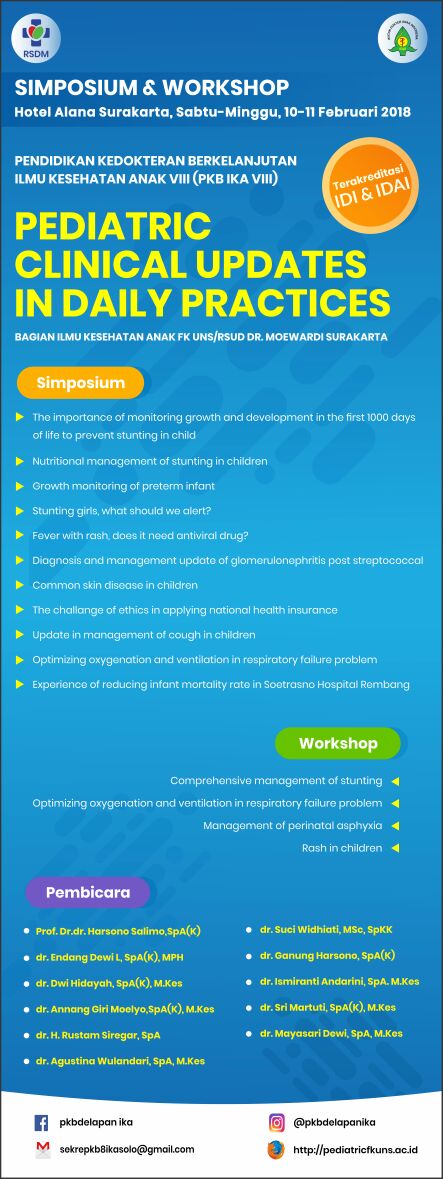3RD Indonesian Pediatric Nutrition and Metabolic Update (NUTRIMET) 2019 yang diadakan pada tanggal 27 - 28 April 2019 yang bertempat di Solo Paragon Hotel, Solo dengan tema " All about Controversies in Nutrition and Metabolic". NUTRIMET yang diadakan selama 2 hari dengan agenda sebagai berikut :